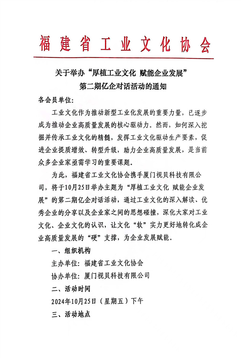关于举办“厚植工业文化 赋能企业发展”第二期亿企对话活动的通知