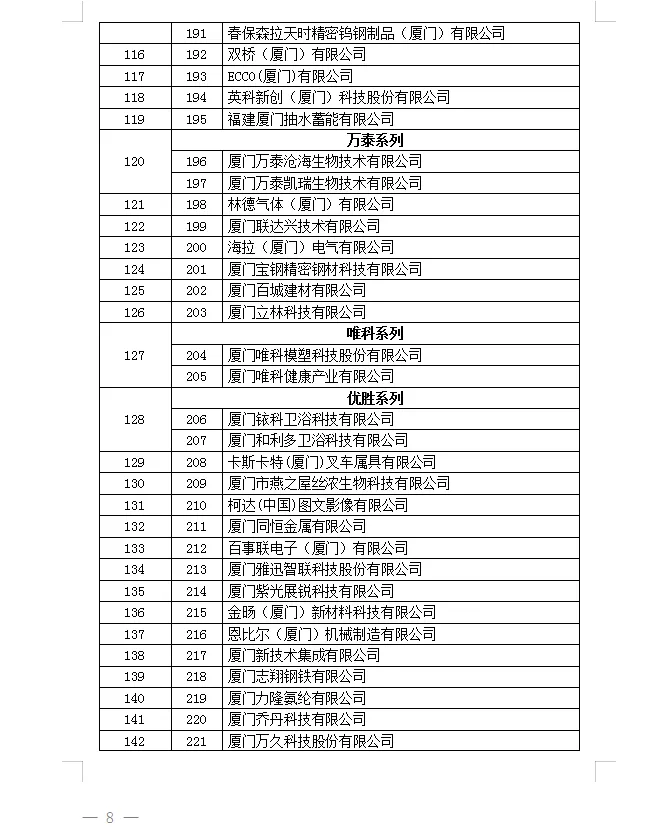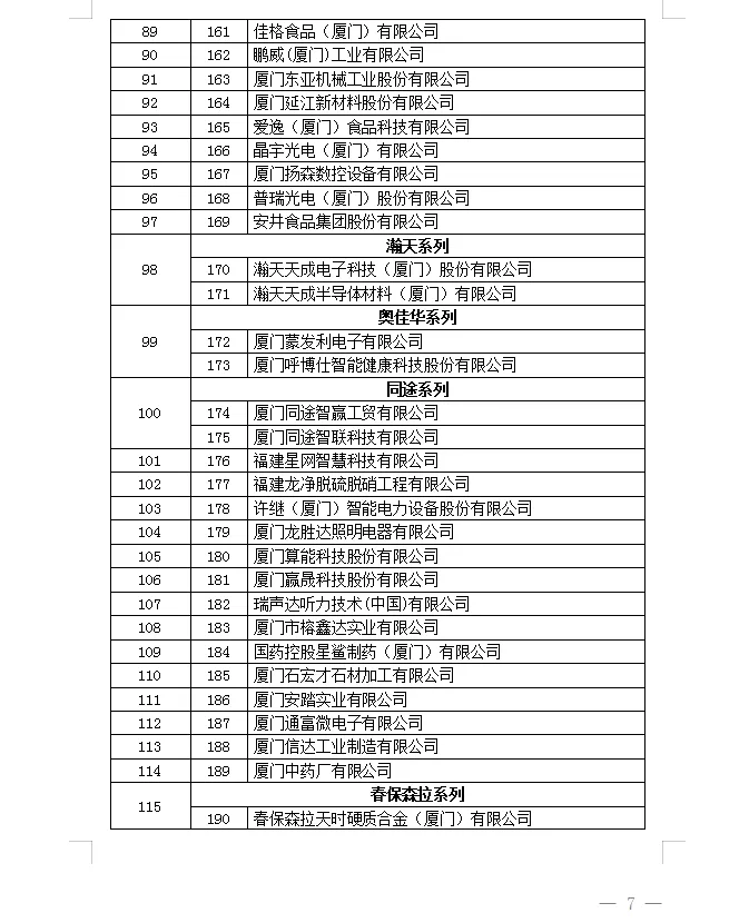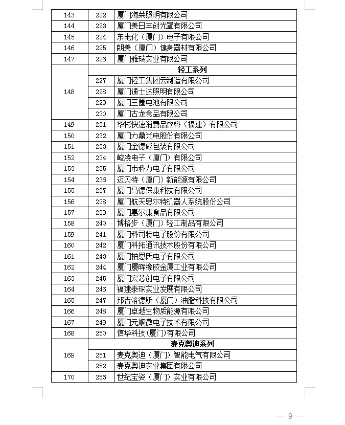 2025年度厦门市重点工业企业名单公示