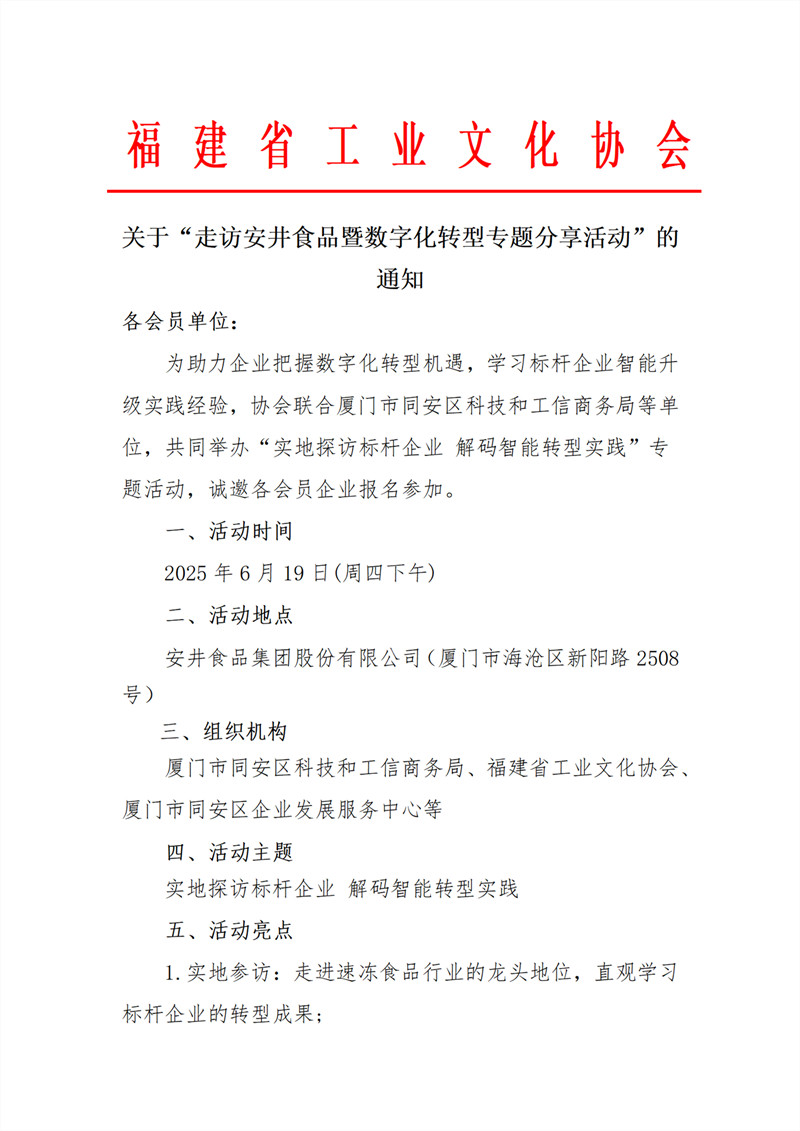 关于“走访安井食品暨数字化转型专题分享活动”的通知