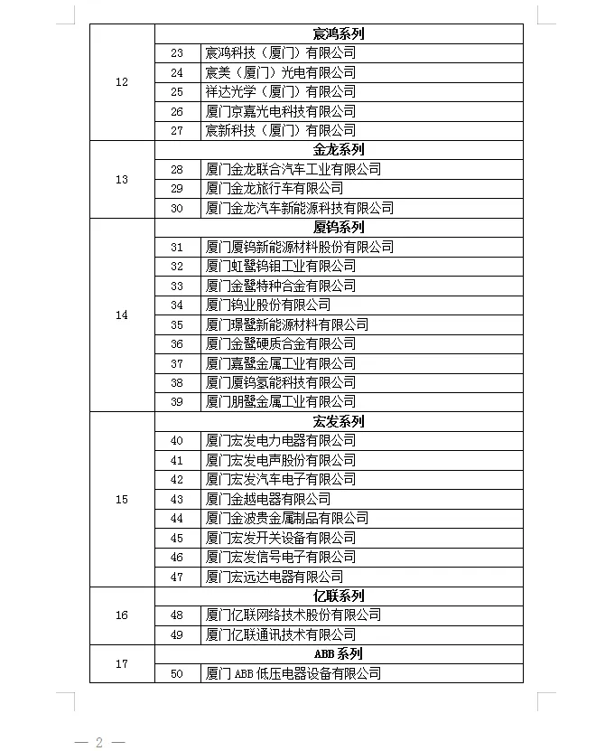 2025年度厦门市重点工业企业名单公示