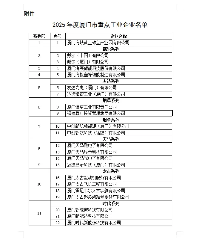 关于公布2025年度厦门市重点工业企业名单的通知